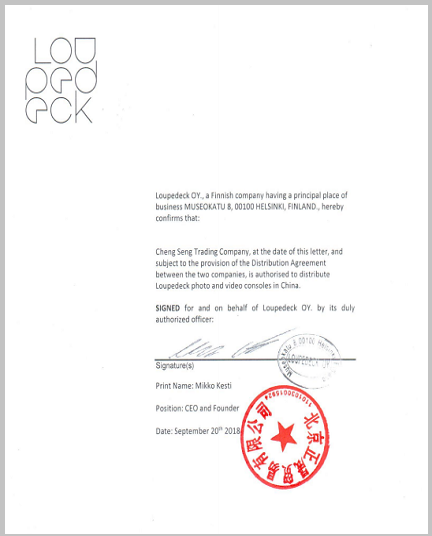 LOUPEDECK授權書(shū)